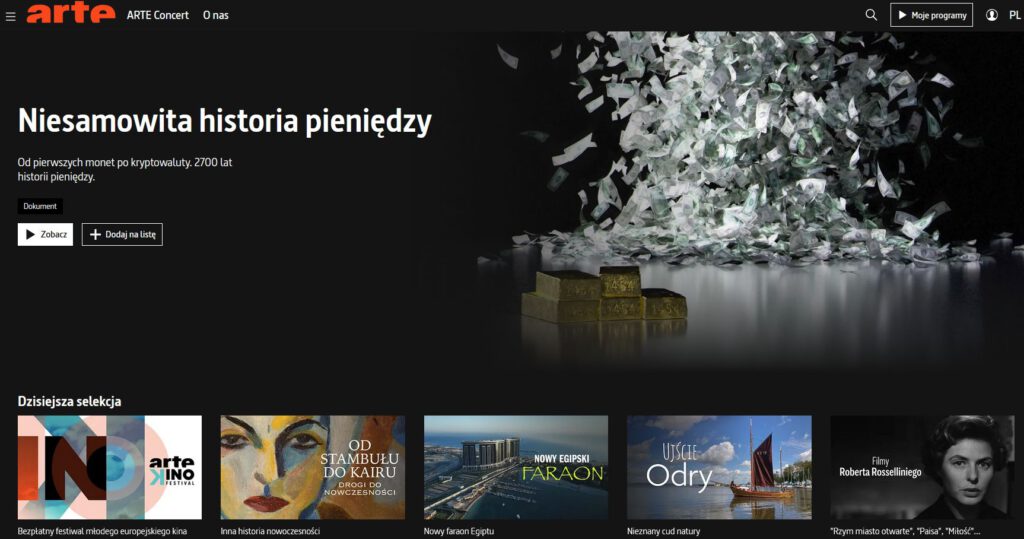 To platforma darmowa, na której możemy obejrzeć filmy, seriale, dokumenty, ale także koncerty. Oferta skierowana jest w stronę łaknących europejskiej kultury. Samych filmów nie ma tam wiele do wyboru, ale trafia tam kino niespopularyzowane, ambitne i czysto europejskie. Do tego mamy sporo innych rzeczy do obejrzenia – magazyny, dokumenty, retransmisje koncertów.